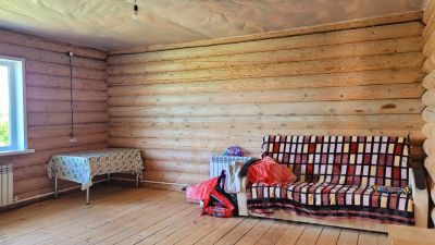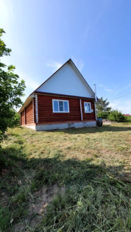 Продам теплый, уютный дом из бревна, построен с душой, для себя. 2 жилые комнаты гостиная+спальня. Возможно сделать второй этаж. Оставляем мебель и технику: кровать, кухонный гарнитур, холодильник, стиральную машину. Отопление: электричество+дрова. Газ по границе участка. Большой двор с насаждениями, дровяник, баня из липы. 2 скважины. Чистая продажа, 1 взрослый собственник, без долгов и обременений.