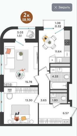 Арт. 105094560 Только для клиентов Самолет Плюс: данную квартиру можно купить со ставкой от В продаже 13,75% и ежемесячным платежом от 73 077 рублей!Просторная квартира с удобной планировкой формата 2-евро в ЖК комфорт-класса ''Мост'' О доме:- монолитно-кирпичный дом комфорт класса -закрытый безопасный двор без машин, детские площадки внутри двора -подземный паркинг (необходимо покупать у застройщика) -красивый дизайнерский холл, колясочные, гостевой туалет -срок сдачи 4 квартал 2025 годаО локации: -10 минут до центра города -рядом медучреждения, супермаркеты, лыжная база Динамо для активного отдыха -детские садики, школы в пешей доступности О квартире: -Предчистовая отделка. В квартире останется только сделать косметический ремонт под Ваш вкус -Удобная планировка -Большой видовой балкон-Продажа по переуступке