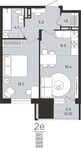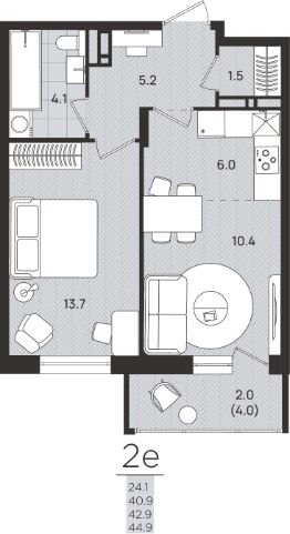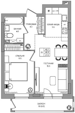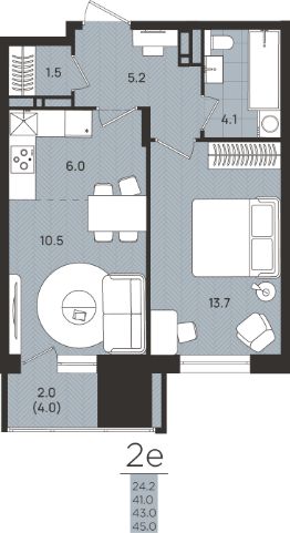 43 м2