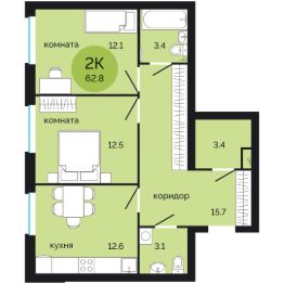 2-к, Яблочкова, 5 корп. 3 Показать на карте