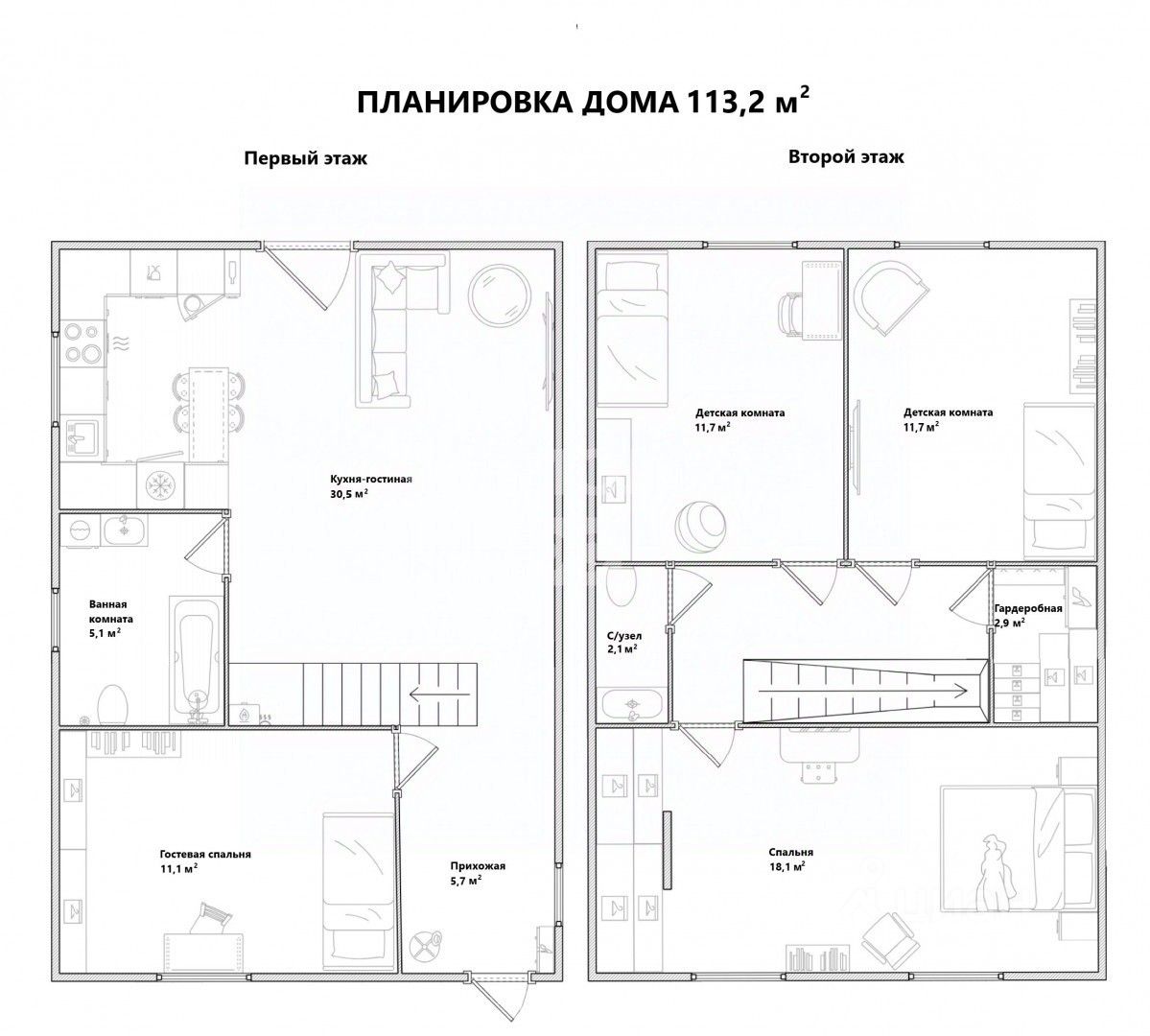 Дом 117 м² · 6.5 соток · 2 этажа