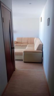 Сдается однокомнатная квартира. Окна выходят во двор на солнечную сторону. Есть застеклённый балкон. Мебель в комнате: тахта, шкаф, тумбочка, тумба под ТВ, кресло на колесиках. На кухне: газовая плита, холодильник, стол стулья, шкафы и тумбы. В ванной комнате: ванная, стиральная машина. В прихожей встроенный шкаф и большое зеркало. Квартира выставлена на продажу, нужно быть готовым, что иногда будут проходить показы и в случае продажи нужно освободить квартиру в течение 10 календарных дней. Поэтому стоимость аренды ниже рыночной. Дополнительно в оплату входит только счётчик электроэнергии. Квартиры сейчас продаются не очень быстро, поэтому возможно достаточно длительное проживание, больше года.Предоплата за 1 месяц