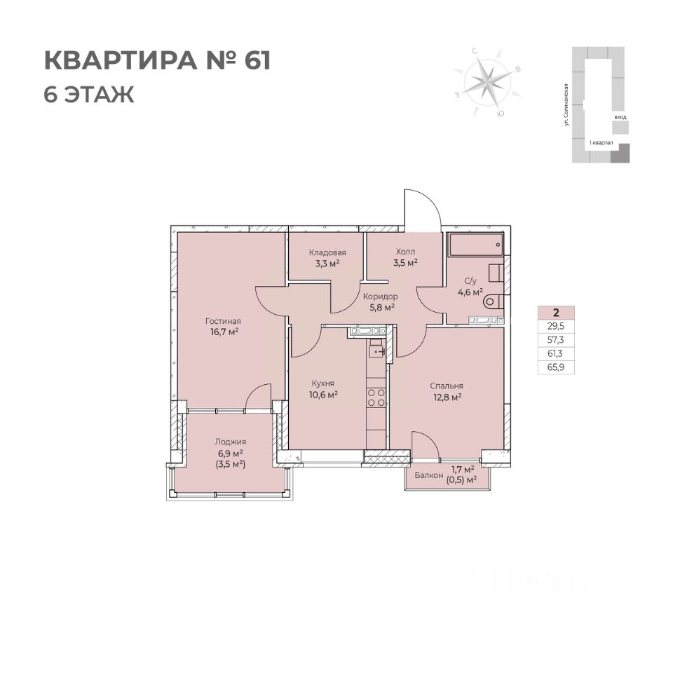 Продаётся 2-комнатная квартира в строящемся доме (I этап), срок сдачи: IV-кв. 2026, общей площадью 65.9 кв.м., на 6 этаже. Новый жилой комплекс ''Ветлан'' от застройщика ''Пермит'' расположен в г. Пермь на ул. Ивана Франко.