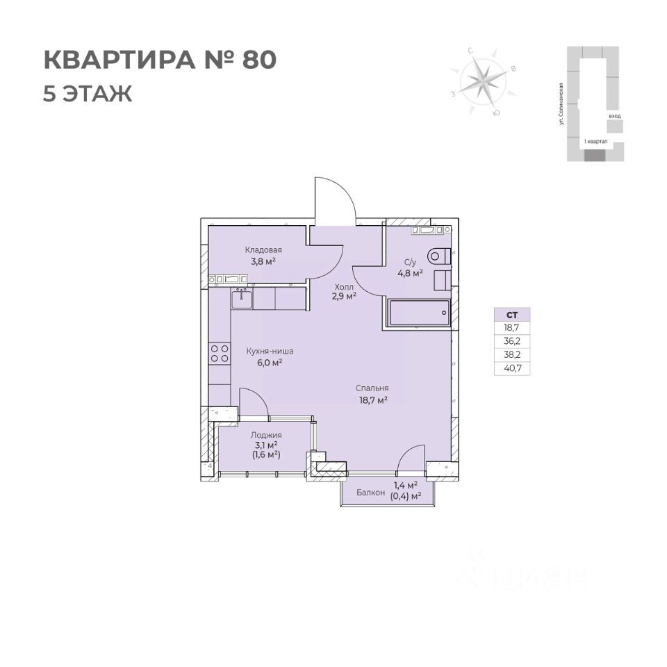 Продаётся студия в строящемся доме (I этап), срок сдачи: IV-кв. 2026, общей площадью 40.7 кв.м., на 5 этаже. Новый жилой комплекс ''Ветлан'' от застройщика ''Пермит'' расположен в г. Пермь на ул. Ивана Франко.