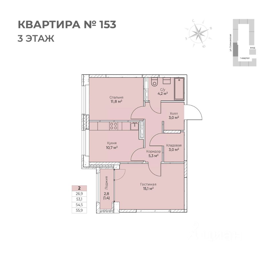 Продаётся 2-комнатная квартира в строящемся доме (I этап), срок сдачи: IV-кв. 2026, общей площадью 55.9 кв.м., на 3 этаже. Новый жилой комплекс ''Ветлан'' от застройщика ''Пермит'' расположен в г. Пермь на ул. Ивана Франко.