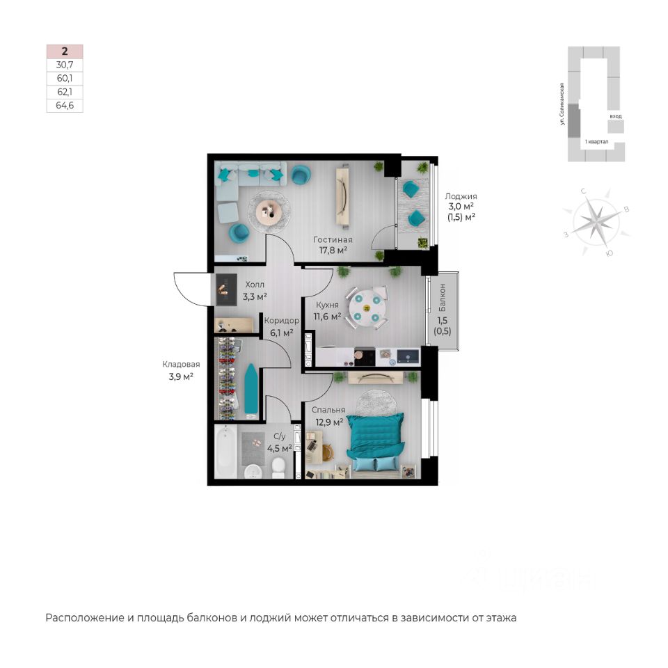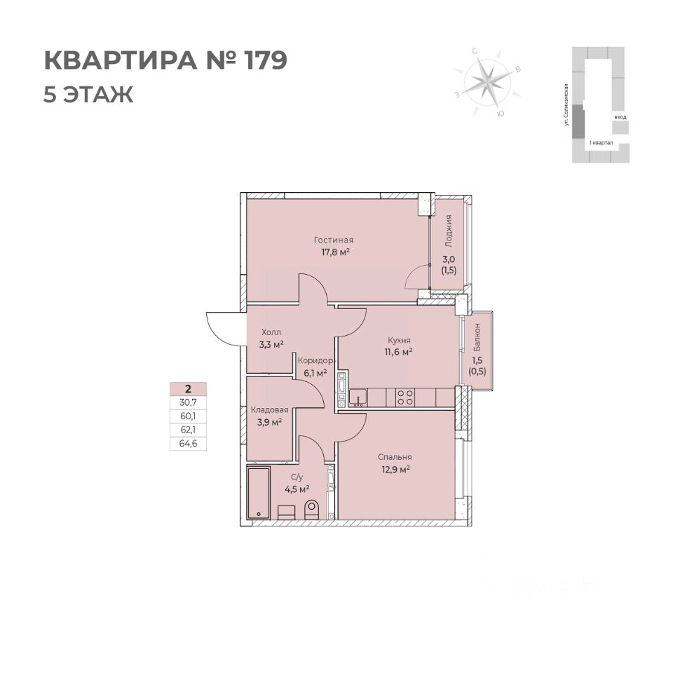 Продаётся 2-комнатная квартира в строящемся доме (I этап), срок сдачи: IV-кв. 2026, общей площадью 64.6 кв.м., на 5 этаже. Новый жилой комплекс ''Ветлан'' от застройщика ''Пермит'' расположен в г. Пермь на ул. Ивана Франко.