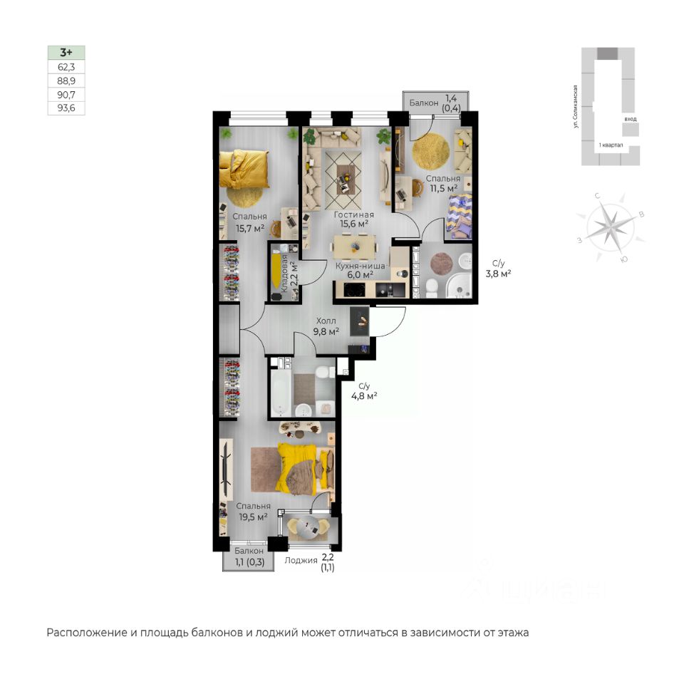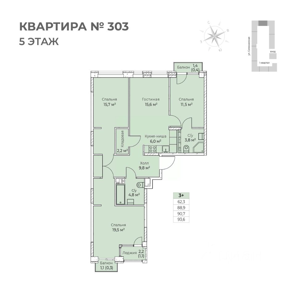 Продаётся 4-комнатная квартира в строящемся доме (I этап), срок сдачи: IV-кв. 2026, общей площадью 93.6 кв.м., на 5 этаже. Новый жилой комплекс ''Ветлан'' от застройщика ''Пермит'' расположен в г. Пермь на ул. Ивана Франко.