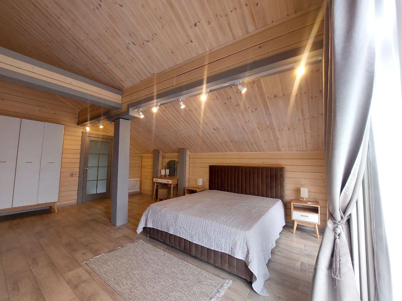 - На первом этаже дома расположены: прихожая с отдельным гардеробом, котельная, большая прачечная, гостевой санузел. Просторная кухня-столовая с выходом на великолепную открытую террасу, гостинная с дровяным камином и холл с лестницей на второй этаж. Справа от главного входа в дом настоящая баня на дровах, с просторной душевой, помещением раздевалки, с собственной открытой террасой и отдельным выходом на участок. - На втором этаже дома расположены: ванная комната, большая мастер-спальня с выходом на балкон, собственным санузлом, гардеробной комнатой с балконом и две просторные спальни квадратной формы - всё что нужно для максимального комфорта.