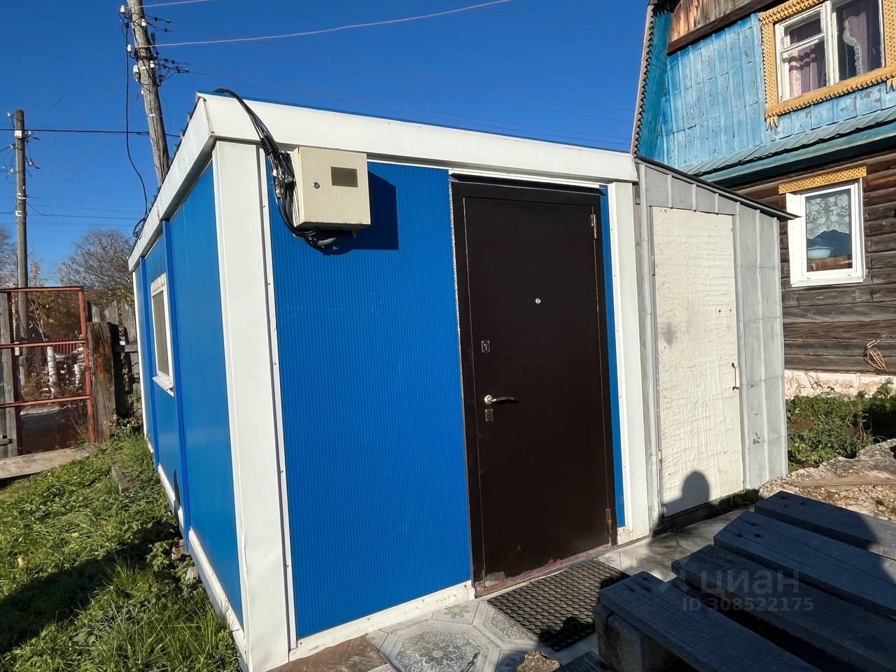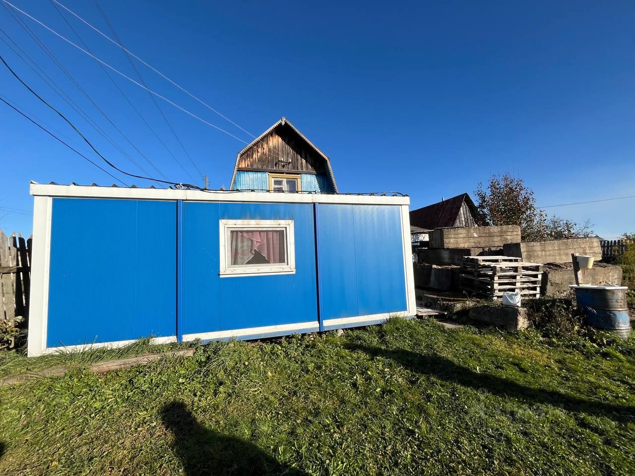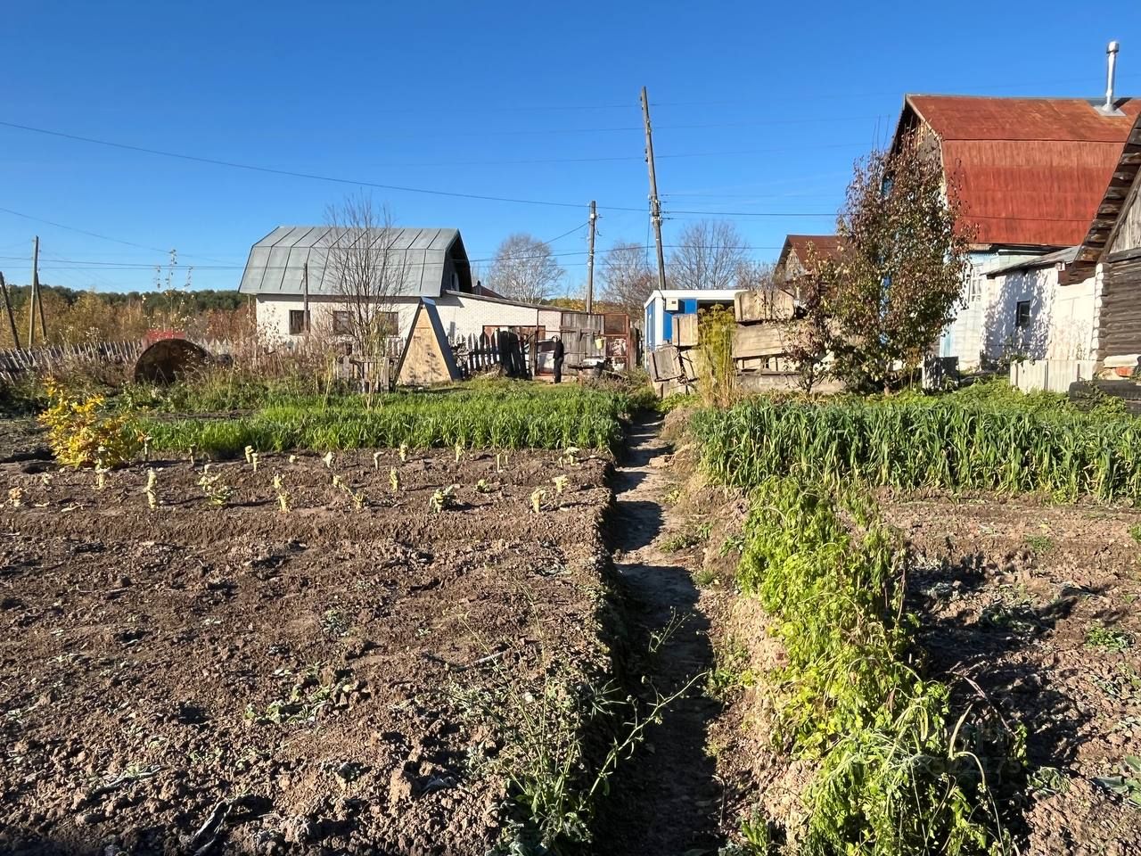 На участке есть водоснабжение, электричество, есть новый вагон-бытовка, который можно использовать как времянку на время строительства дома, небольшой сарайчик для хранения садового инвентаря, биотуалет.