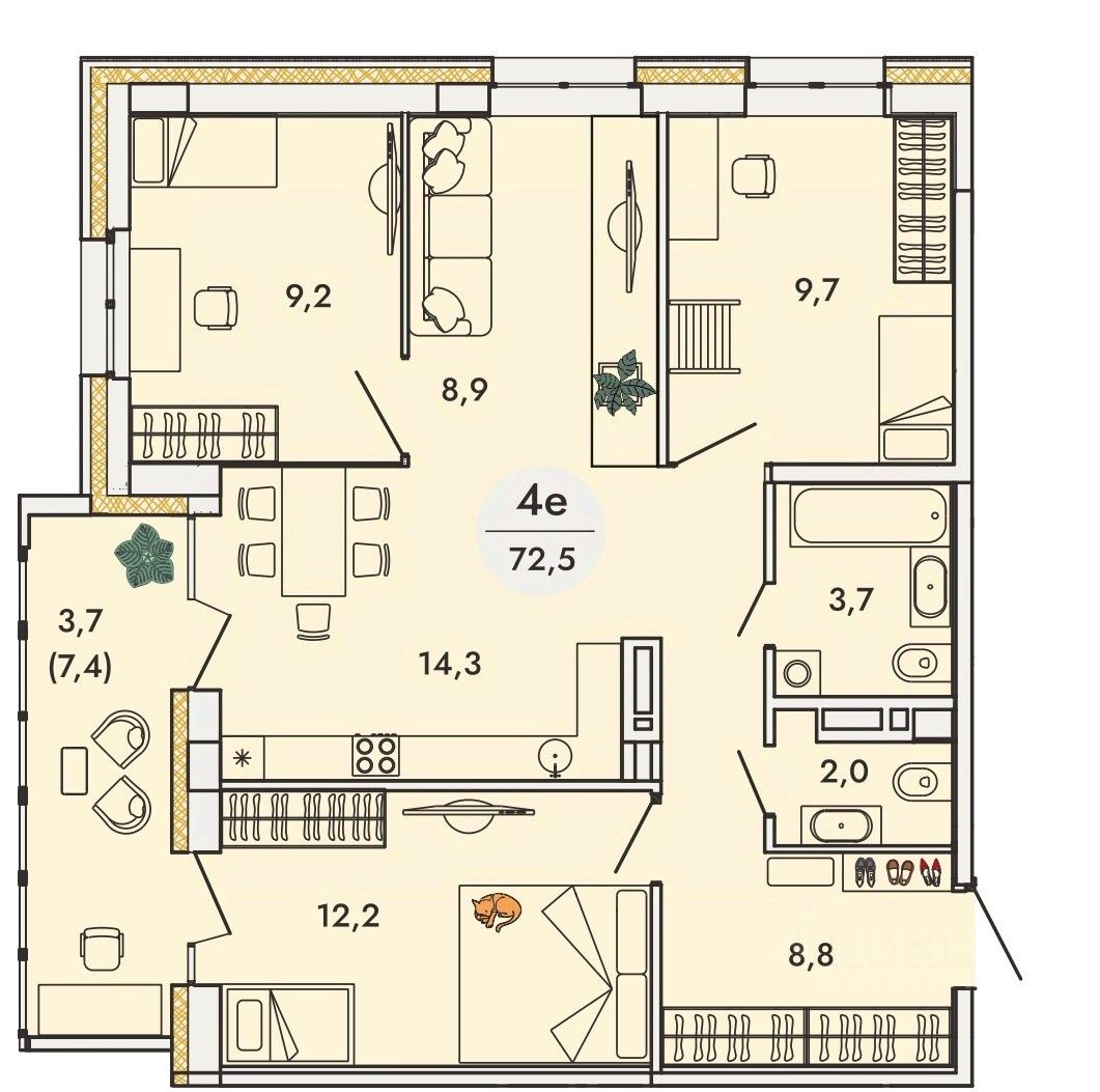 Общая площадь72,5 м2