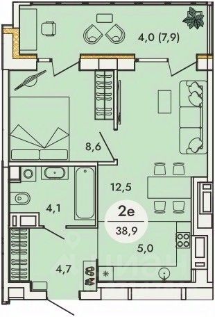 Общая площадь38,9 м2
