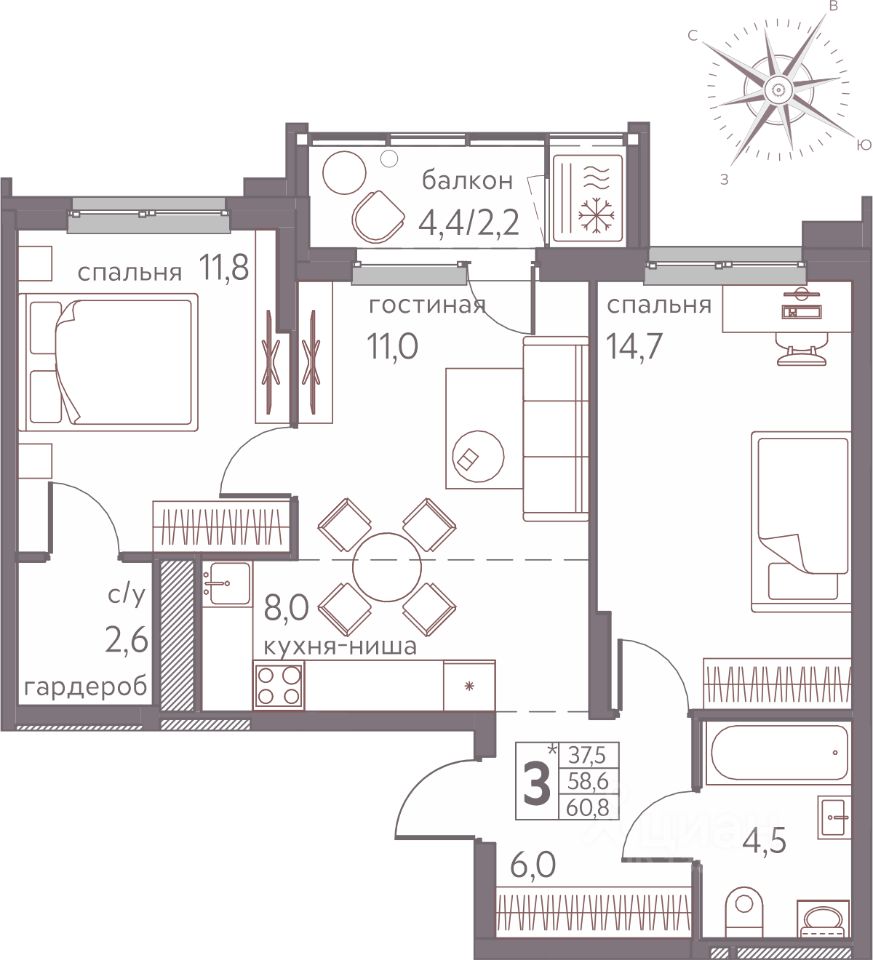 Продаётся студия в строящемся доме (Серебристая, 3), срок сдачи: III-кв. 2026, общей площадью 60.8 кв.м., на 12 этаже. Теплые кварталы ''Погода'' — это новый грандиозный проект от создателя Спортивного микрорайона ''Ива'', федерального застройщика ''Девелопмент-Юг'' .