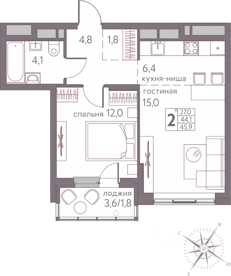 Продаётся студия в строящемся доме (Серебристая, 3), срок сдачи: III-кв. 2026, общей площадью 45.9 кв.м., на 12 этаже. Теплые кварталы ''Погода'' — это новый грандиозный проект от создателя Спортивного микрорайона ''Ива'', федерального застройщика ''Девелопмент-Юг'' .