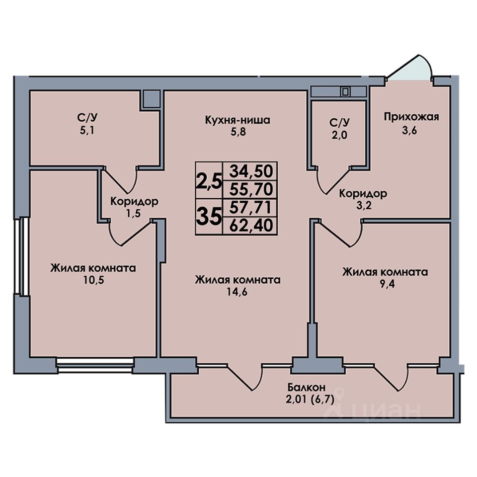 продам 3-к, Культуры, 5а7 301 000 ₽