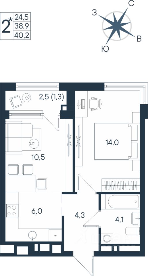 Продаётся студия в строящемся доме (Дом 17), срок сдачи: IV-кв. 2026, общей площадью 40.2 кв.м., на 2 этаже. Новый жилой комплекс ''ЮГ на Беляева'' от Специализированного застройщика ''Беляева 17'' расположен по адресу: г. Пермь, улица Космонавта Беляева.