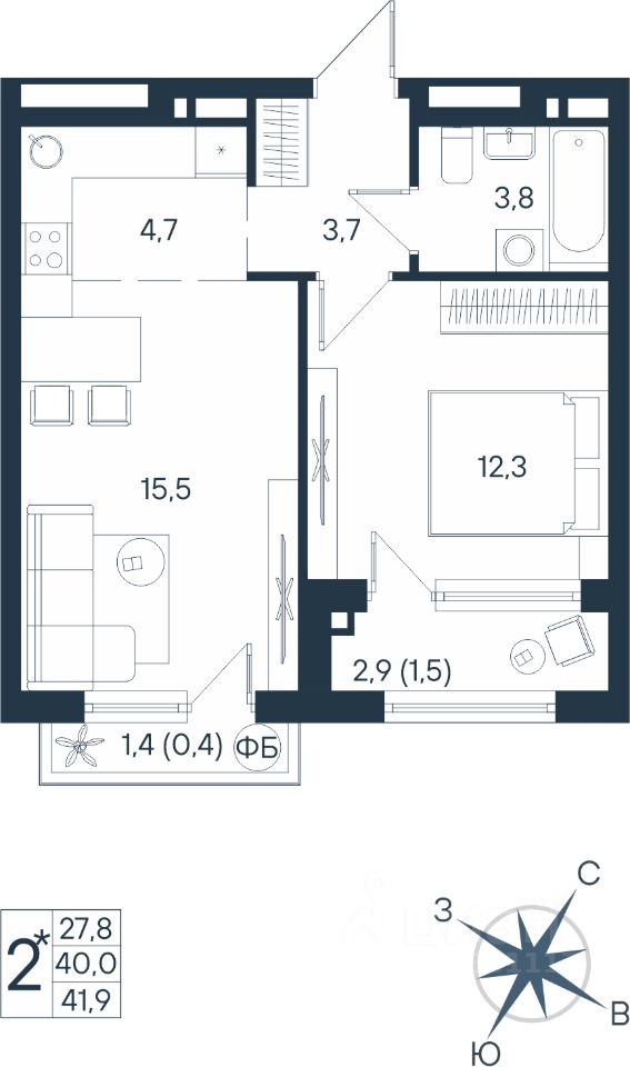 Продаётся студия в строящемся доме (Дом 17), срок сдачи: IV-кв. 2026, общей площадью 41.9 кв.м., на 6 этаже. Новый жилой комплекс ''ЮГ на Беляева'' от Специализированного застройщика ''Беляева 17'' расположен по адресу: г. Пермь, улица Космонавта Беляева.