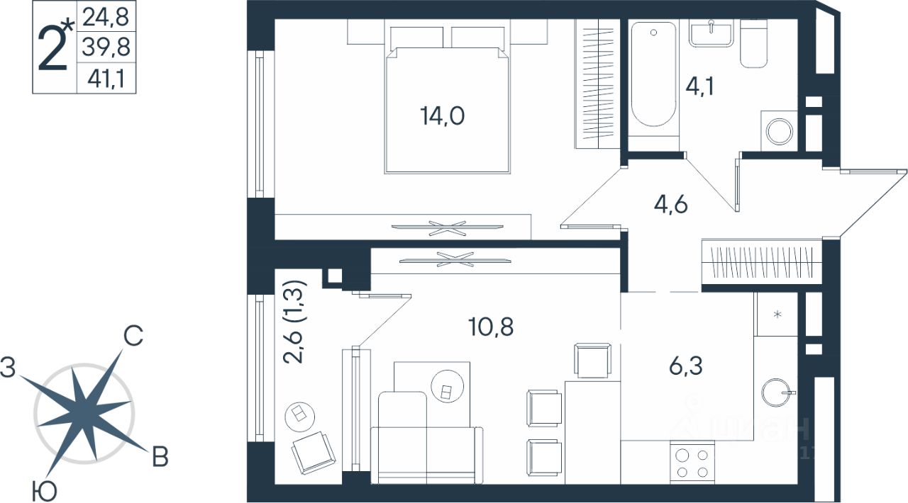 Продаётся студия в строящемся доме (Дом 17), срок сдачи: IV-кв. 2026, общей площадью 41.1 кв.м., на 7 этаже. Новый жилой комплекс ''ЮГ на Беляева'' от Специализированного застройщика ''Беляева 17'' расположен по адресу: г. Пермь, улица Космонавта Беляева.
