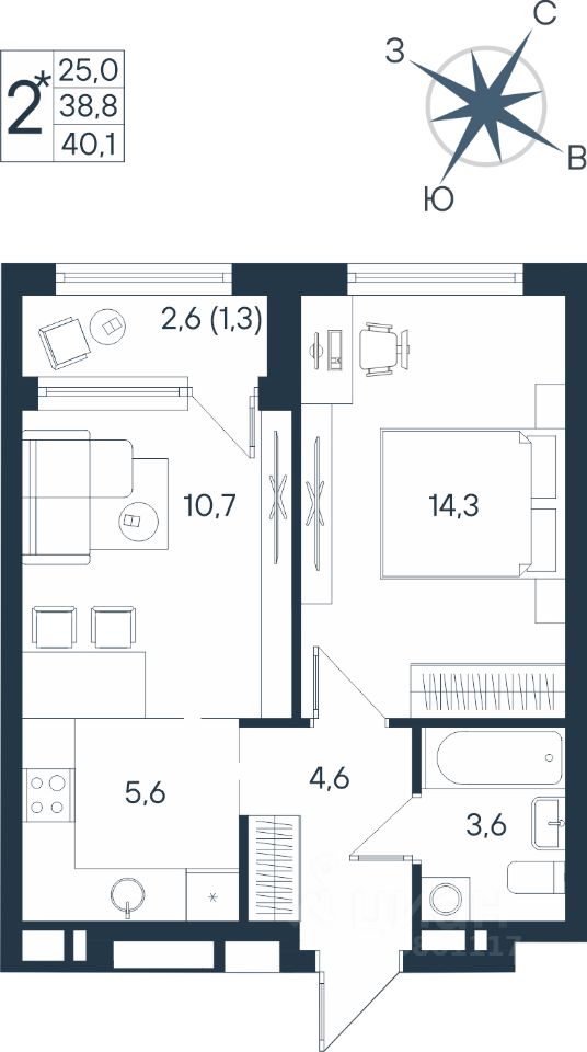 Продаётся студия в строящемся доме (Дом 17), срок сдачи: IV-кв. 2026, общей площадью 40.1 кв.м., на 6 этаже. Новый жилой комплекс ''ЮГ на Беляева'' от Специализированного застройщика ''Беляева 17'' расположен по адресу: г. Пермь, улица Космонавта Беляева.