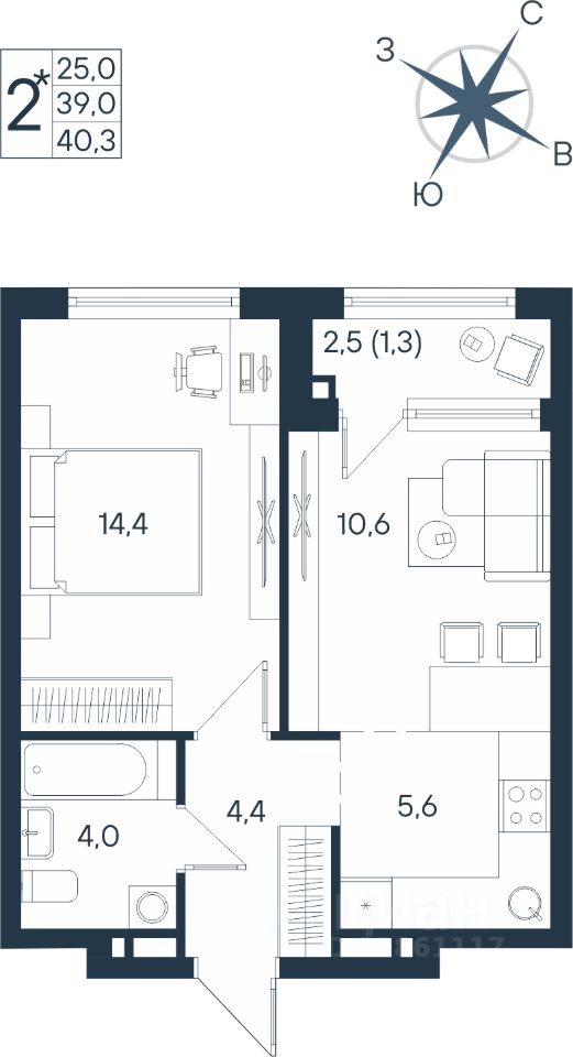 Продаётся студия в строящемся доме (Дом 17), срок сдачи: IV-кв. 2026, общей площадью 40.3 кв.м., на 7 этаже. Новый жилой комплекс ''ЮГ на Беляева'' от Специализированного застройщика ''Беляева 17'' расположен по адресу: г. Пермь, улица Космонавта Беляева.