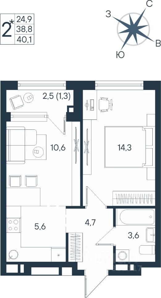 продам 1-к, Космонавта Беляева, 177 250 080 ₽