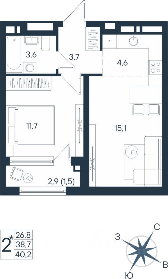 Продаётся студия в строящемся доме (Дом 17), срок сдачи: IV-кв. 2026, общей площадью 40.2 кв.м., на 2 этаже. Новый жилой комплекс ''ЮГ на Беляева'' от Специализированного застройщика ''Беляева 17'' расположен по адресу: г. Пермь, улица Космонавта Беляева.