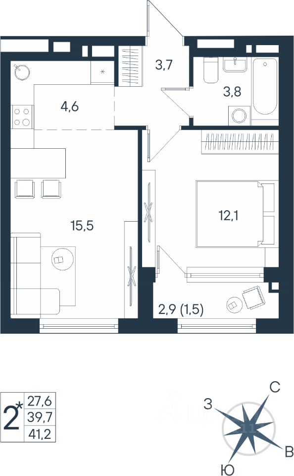 Продаётся студия в строящемся доме (Дом 17), срок сдачи: IV-кв. 2026, общей площадью 41.2 кв.м., на 2 этаже. Новый жилой комплекс ''ЮГ на Беляева'' от Специализированного застройщика ''Беляева 17'' расположен по адресу: г. Пермь, улица Космонавта Беляева.