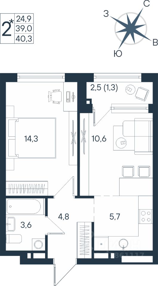 Продаётся студия в строящемся доме (Дом 17), срок сдачи: IV-кв. 2026, общей площадью 40.3 кв.м., на 4 этаже. Новый жилой комплекс ''ЮГ на Беляева'' от Специализированного застройщика ''Беляева 17'' расположен по адресу: г. Пермь, улица Космонавта Беляева.