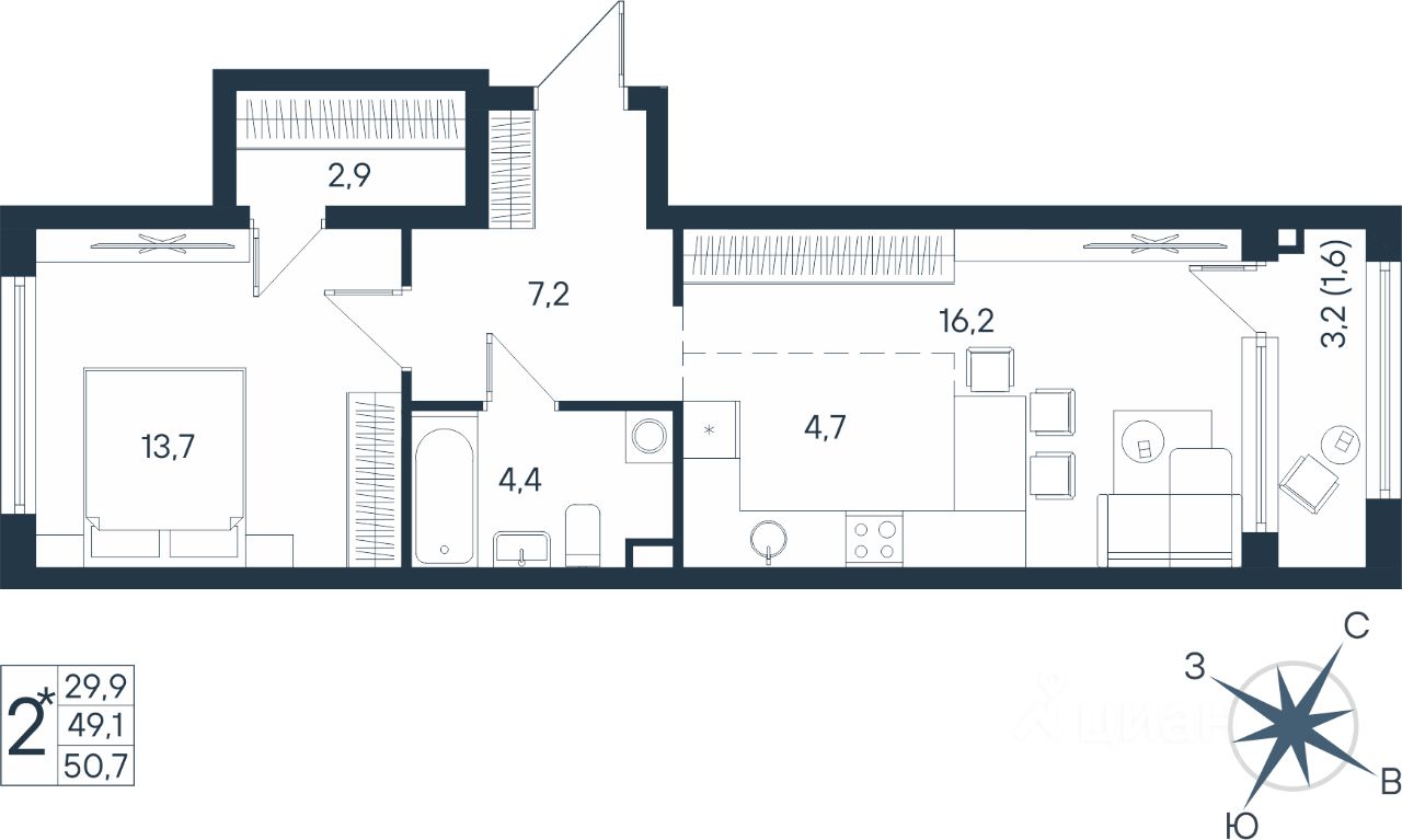 Продаётся студия в строящемся доме (Дом 17), срок сдачи: IV-кв. 2026, общей площадью 50.7 кв.м., на 2 этаже. Новый жилой комплекс ''ЮГ на Беляева'' от Специализированного застройщика ''Беляева 17'' расположен по адресу: г. Пермь, улица Космонавта Беляева.