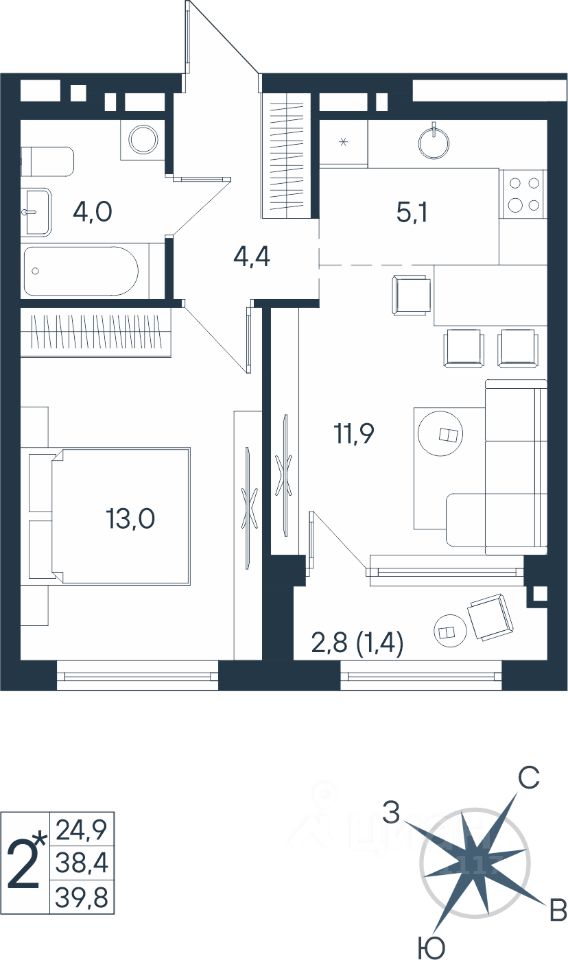 Продаётся студия в строящемся доме (Дом 17), срок сдачи: IV-кв. 2026, общей площадью 39.8 кв.м., на 11 этаже. Новый жилой комплекс ''ЮГ на Беляева'' от Специализированного застройщика ''Беляева 17'' расположен по адресу: г. Пермь, улица Космонавта Беляева.