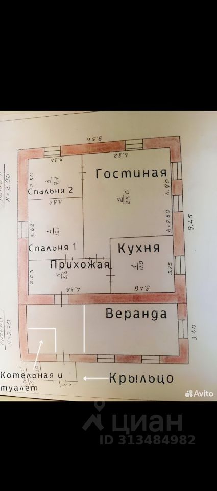 В доме 3 спальни, гостиная, прихожая, кухня, а также веранда, котельная, туалет, две кладовых комнаты - 48 квадратных метра