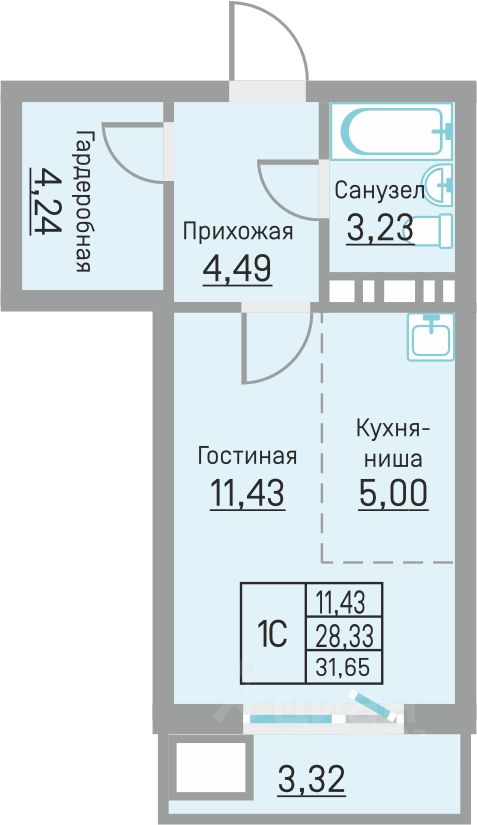 продам 1-к, Водопроводная, 6/44 424 000 ₽