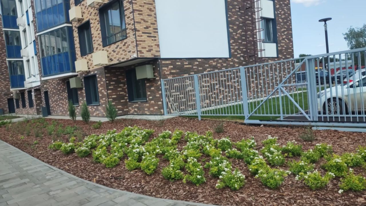 В доме безбарьерная среда и концепция - двор без машин. Внутри двора прекрасная детская площадка, дворовые дороги покрыты брусчаткой. дворы все загорожены, чужие не пройдут. у всех электронные ключи.