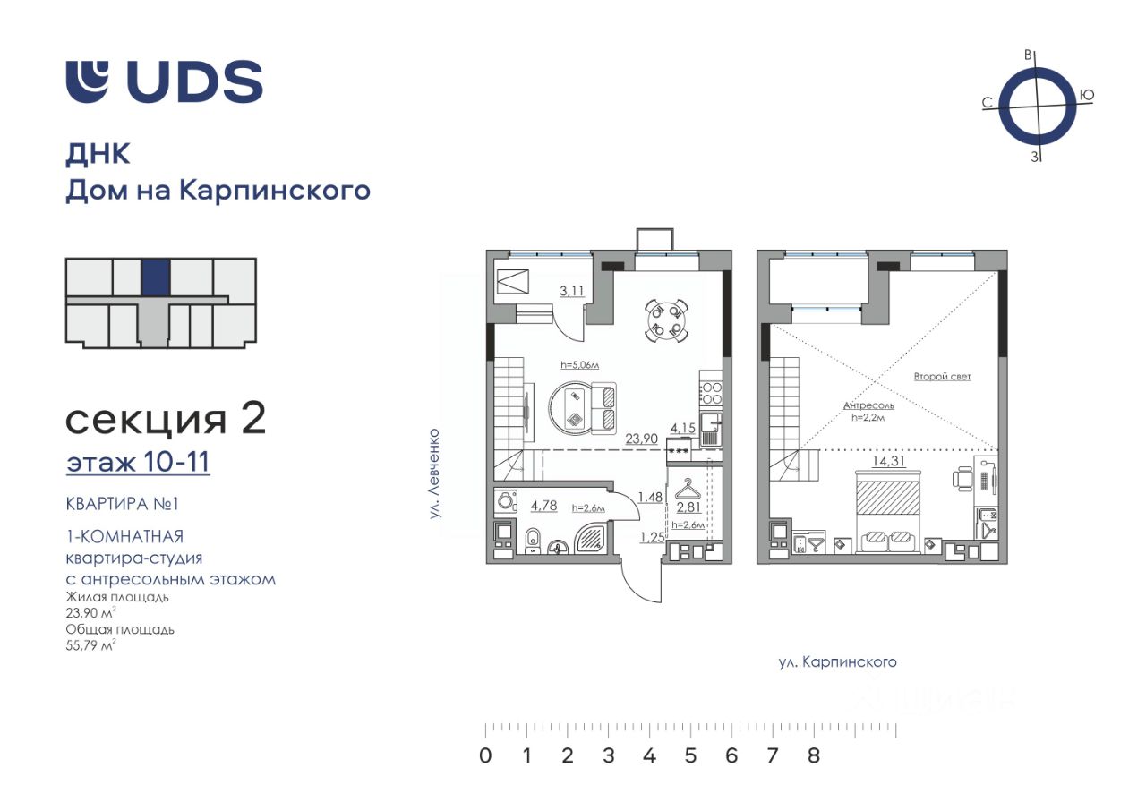 продам 2-к, Карпинского, 1110 416 924 ₽