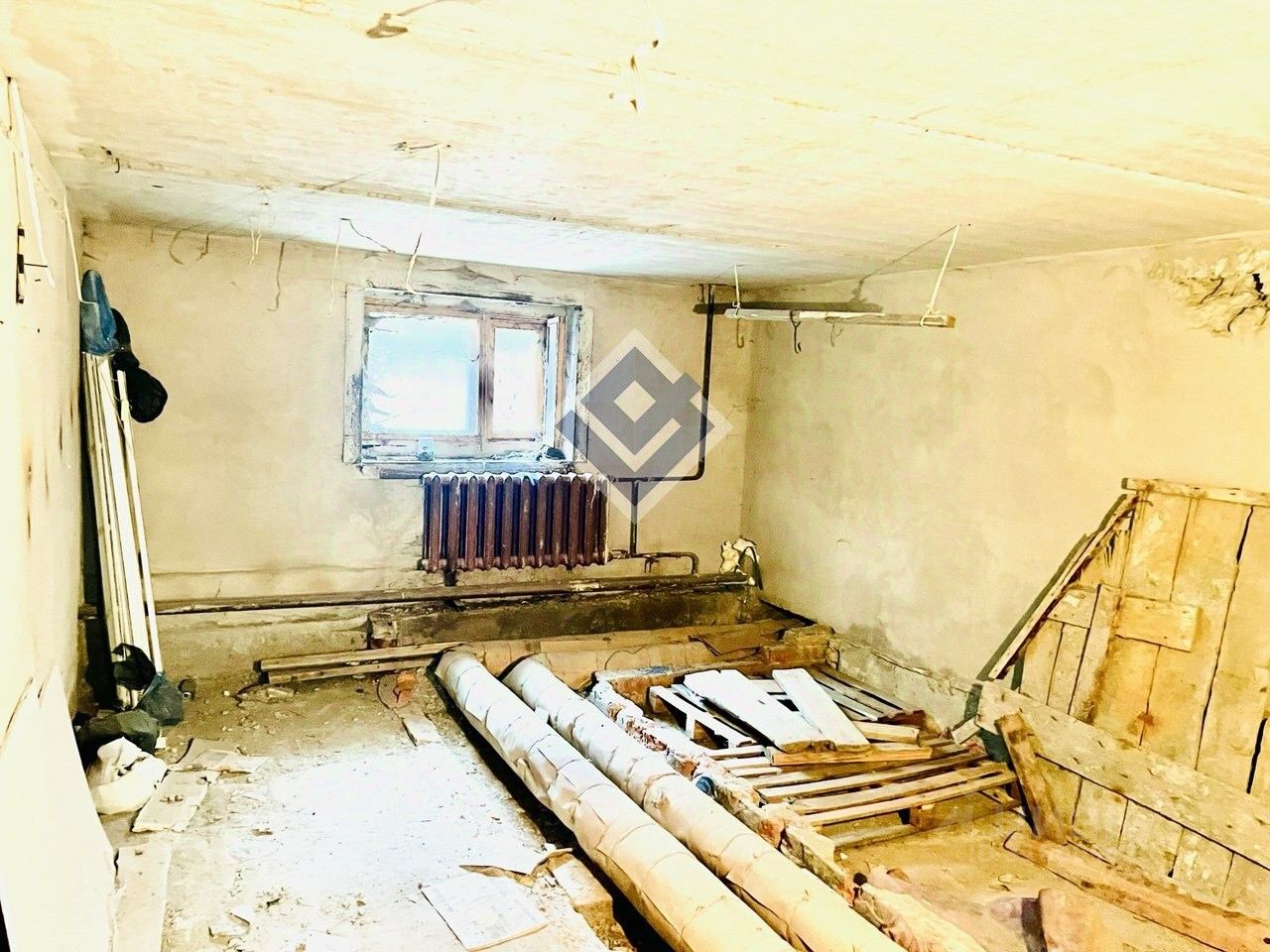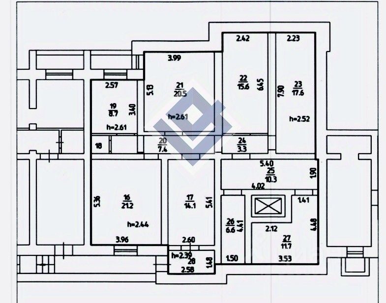 Имеется одно окно. Высота потолков в помещениях от 2,4 м до 2,6 м.