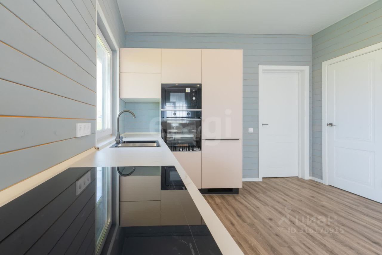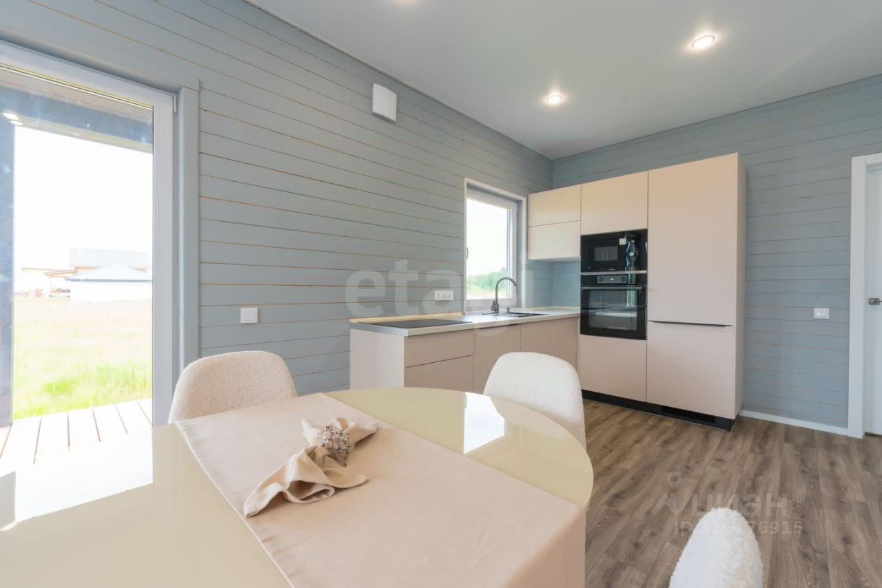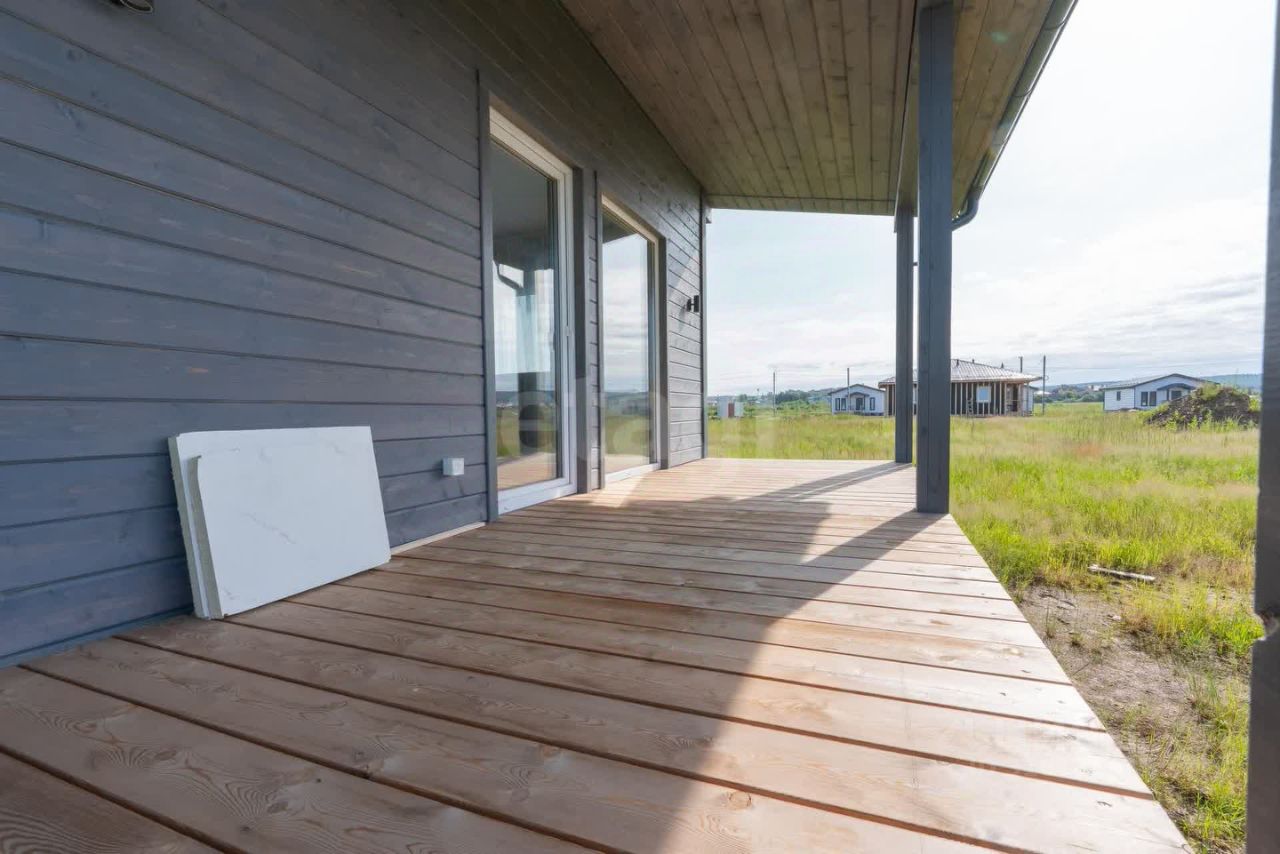 Готовый дом 74,9 кв.м. стильный и одновременно функциональный, эргономичная и очень продуманная планировка: совмещенная кухня-гостиная с панорамным остеклением и выходом на собственную террасу 10 кв. м., 2 спальные комнаты, одна из которых со своим отдельным санузлом (мастер-спальня), второй санузел и отдельное помещение для котельной, оконные проемы с низкими подоконниками.