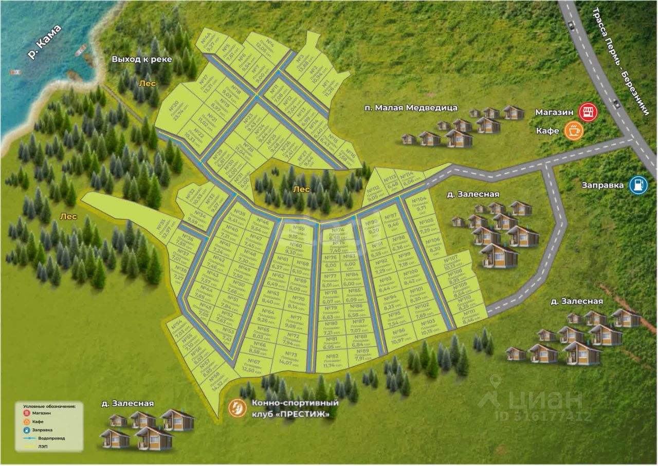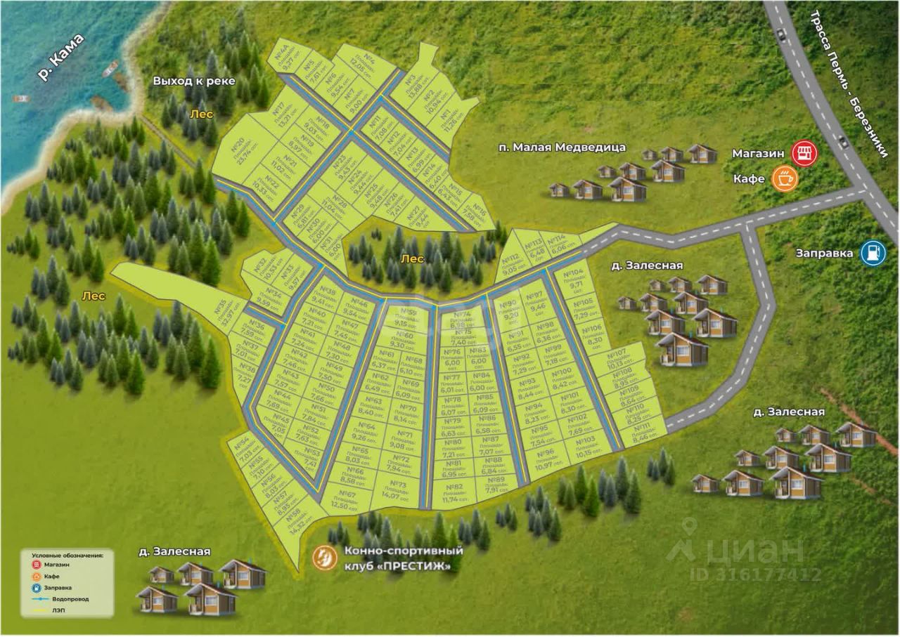 В поселке вы найдете: - Центральное водоснабжение (общая скважина) - Электричество, уже заведенное в поселок