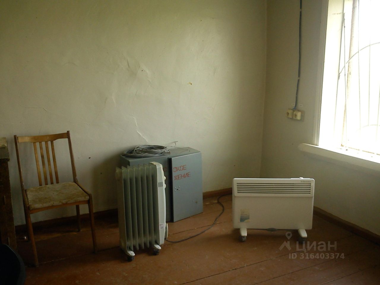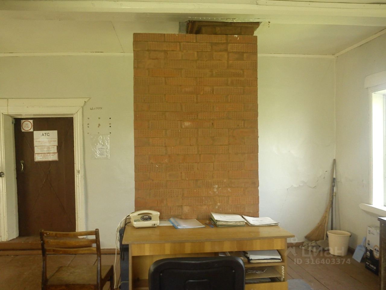 Здание 1958 года постройки. Высота потолков - 2,85 м. Фундамент - бетонный, стены - бревенчатые, кровля - шифер по деревянной обрешетке.