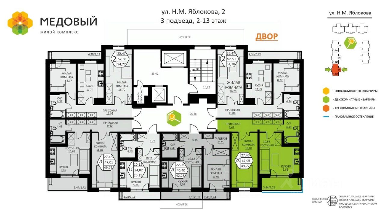 продам 2-к, Яблокова Н.М., 26 736 992 ₽