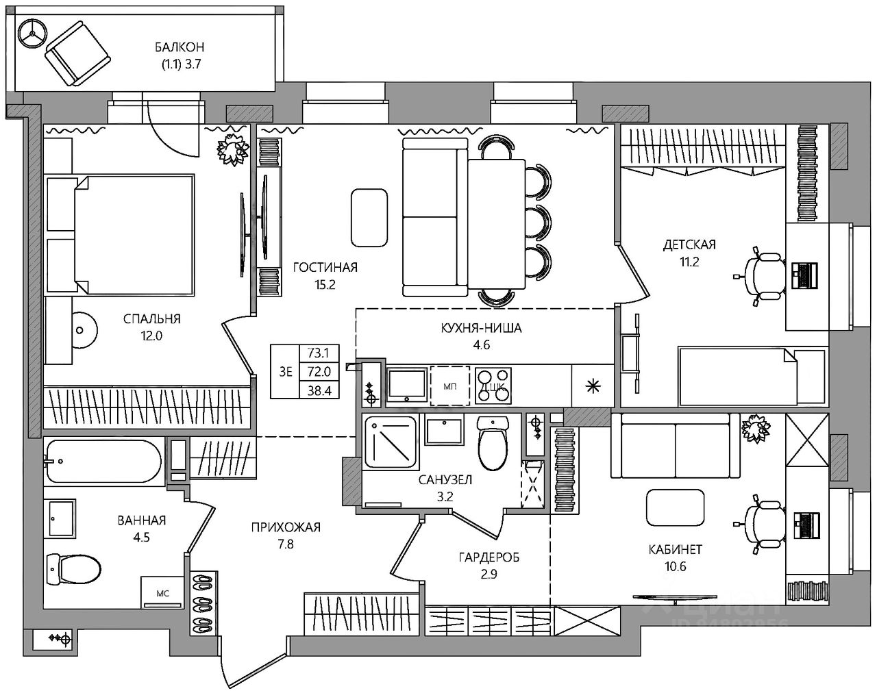 Общая площадь73,1 м2