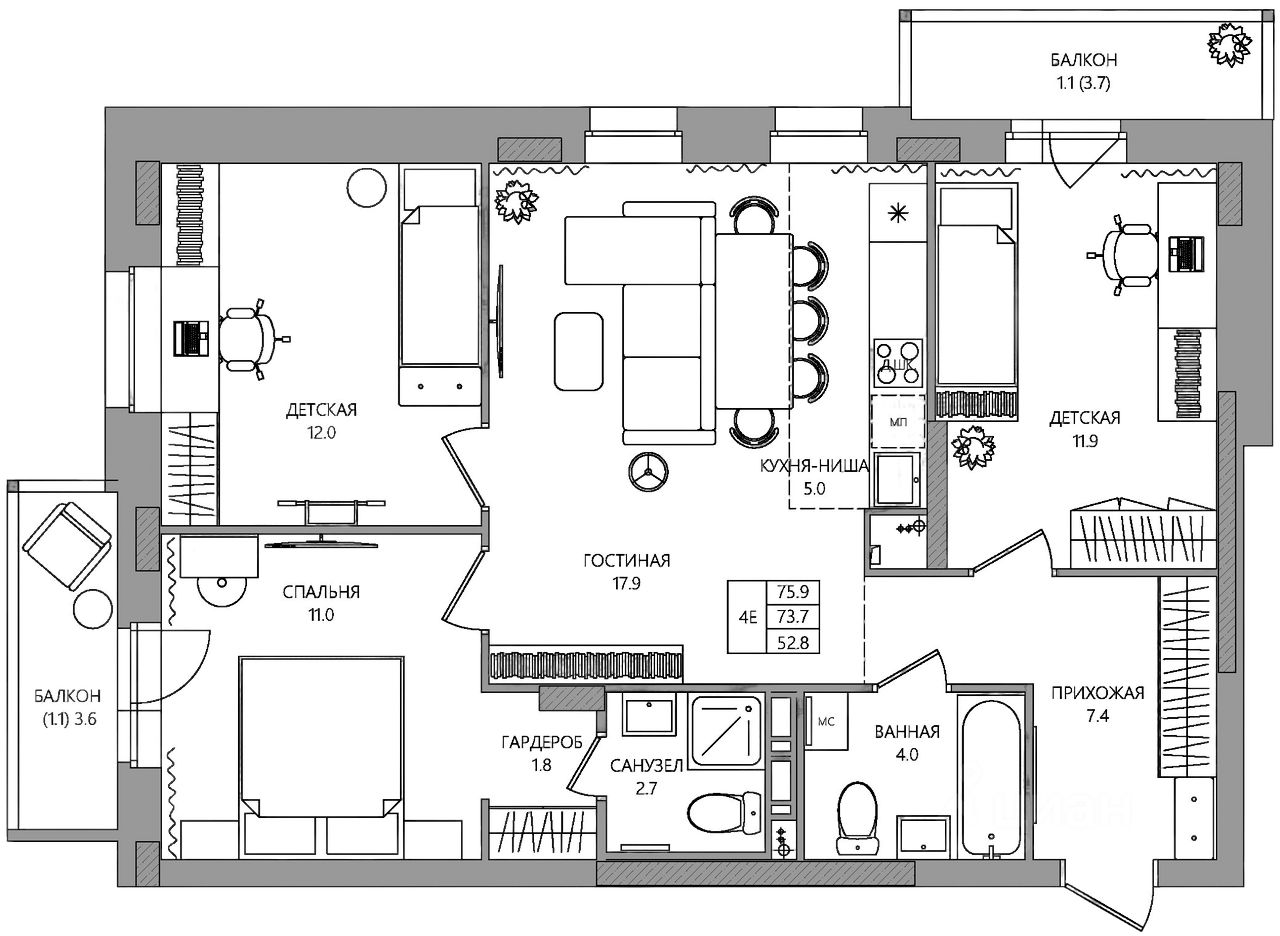 Общая площадь75,9 м2