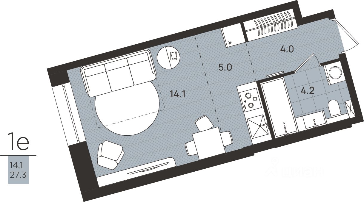Общая площадь27,3 м2