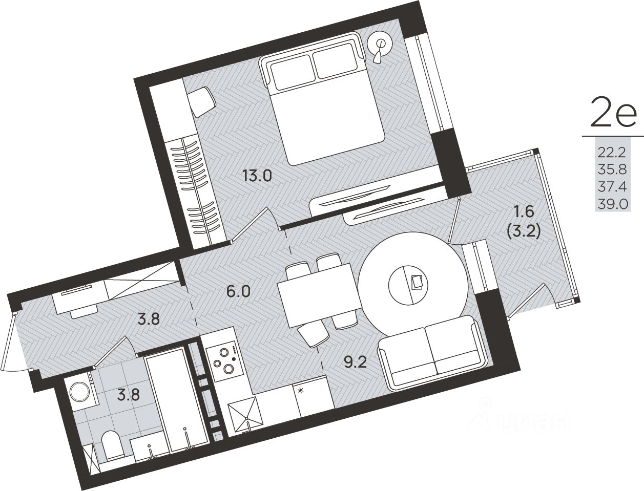 Общая площадь37,4 м2
