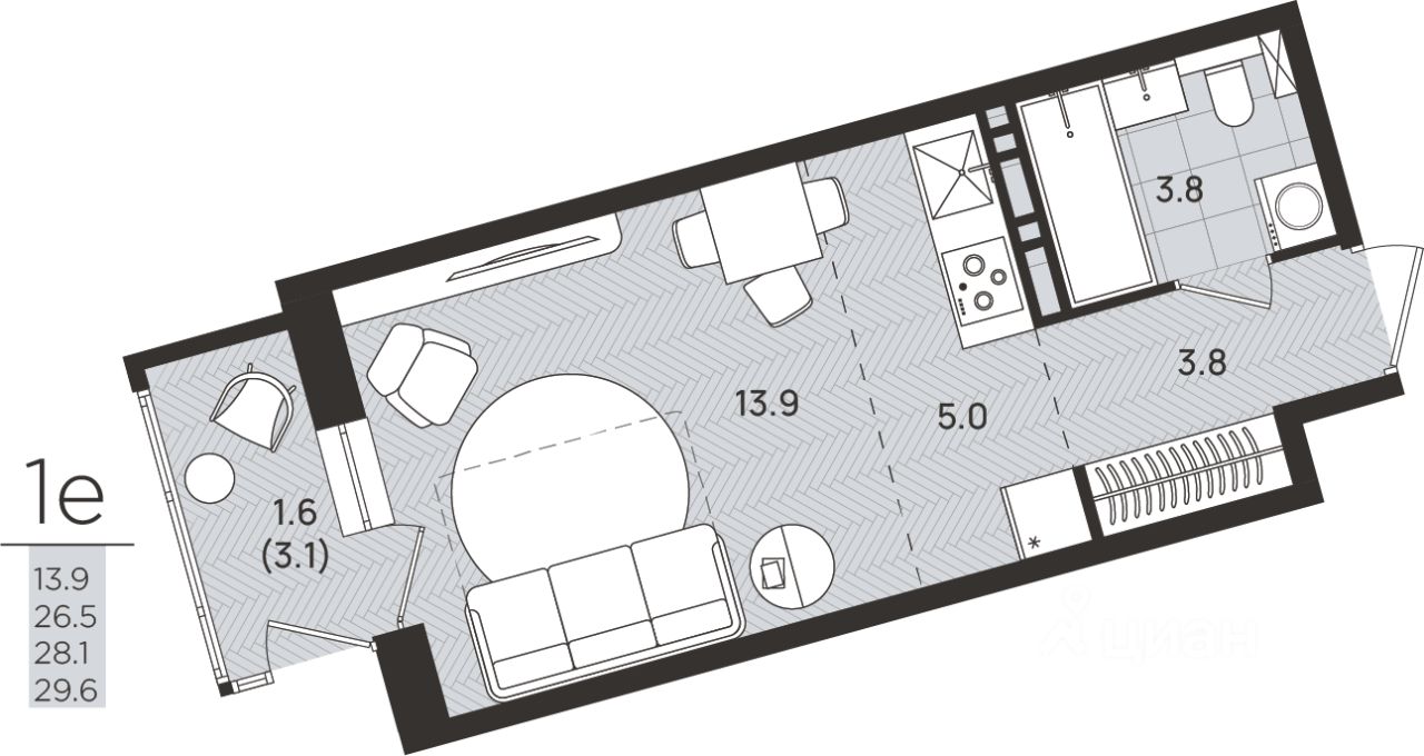 Общая площадь28,1 м2
