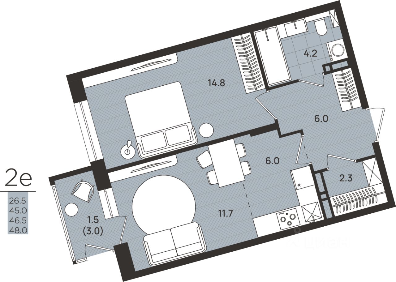 Общая площадь46,5 м2