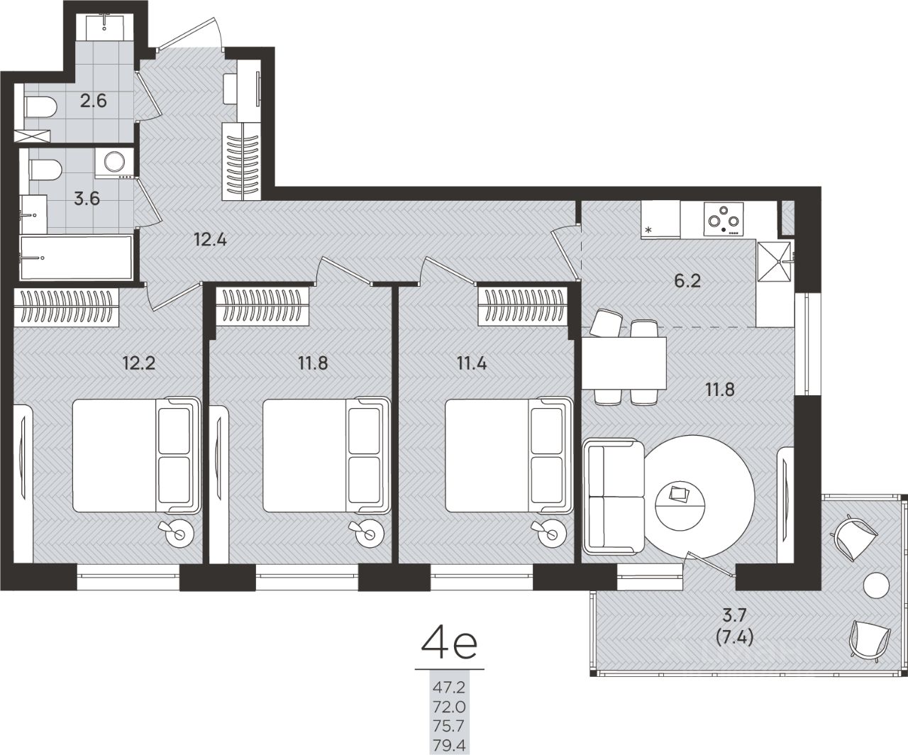 Общая площадь75,7 м2