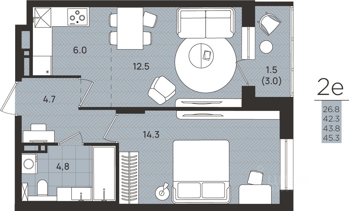 Общая площадь43,8 м2