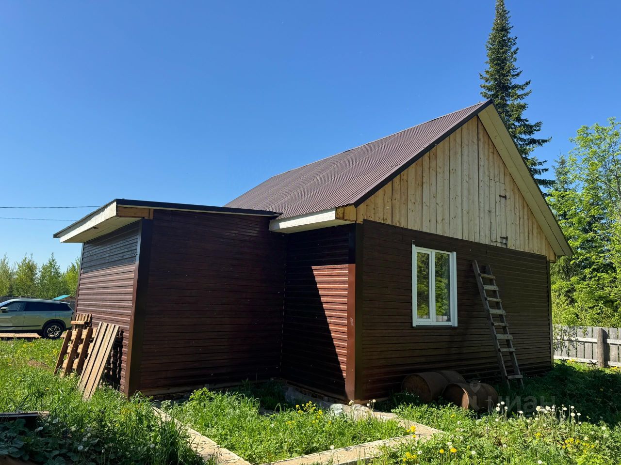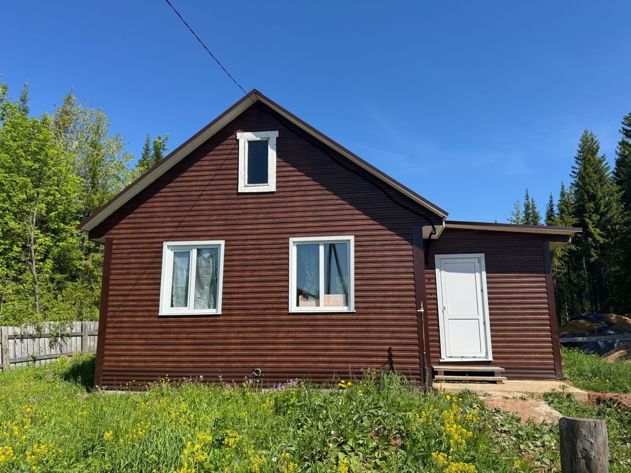 В доме не жили, отапливался всегда. Есть фундамент под котельную. На участке расположена постройка под баню.