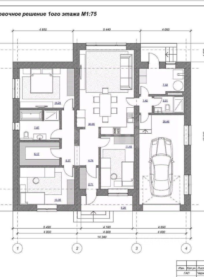 Стены выполнены из газоблока толщиной 400 мм, утеплитель изовер толщиной 50 мм обеспечивает надежную теплоизоляцию. Элегантный фасад облицован красивым кирпичом, что придает дому стильный и современный вид.
