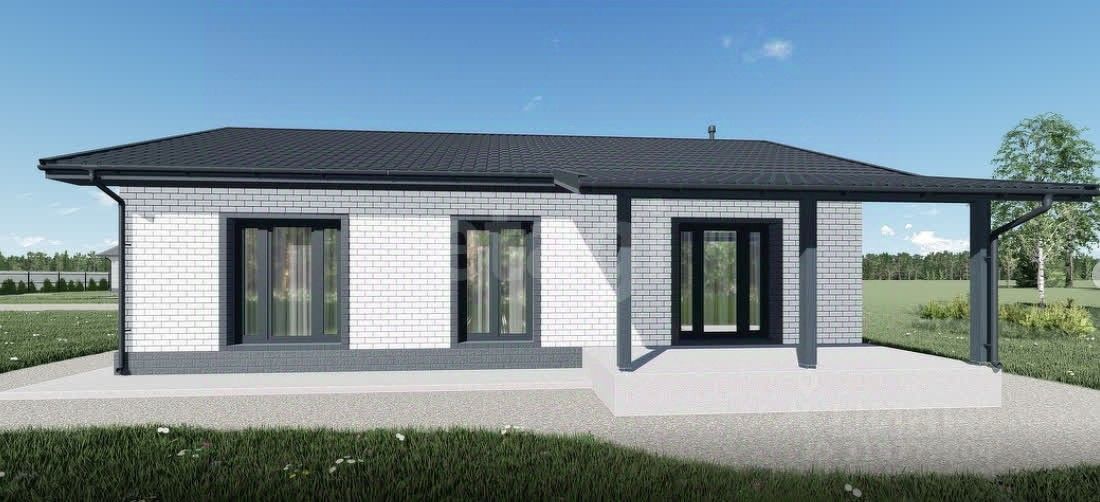 О доме: Современный одноэтажный дом с эргономичной планировкой. Площадь дома 100 м2. Дом из газобетона. Выполнена пред чистовая отделка, по желанию можно сделать отделку под ключ с сан техникой.