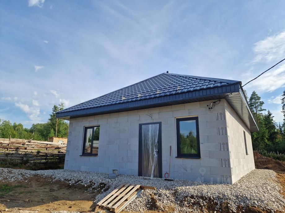 О ДОМЕ: - Ваш новый уютный просторный дом 71 кв.м. на ровном и сухом участке 7 соток - Фундамент дома - железобетонная плита с наружным утеплением - Наружные стены дома выполнены из качественного газоблока D350, что позволяет сохранять тепло в доме без дополнительного утепления - Стены в доме - из газоблока D350 и ПГП - Крыша четырёхскатная - металлочерепица, гидроизоляция и пароизоляция, утеплитель - Перекрытия утеплённые, обработанные огнебиозащитным составом - Электричество 380 Вт (15 кВт) - Отопление - тёплые полы от электрокотла с системой контурного управления, что позволит создать Вам в каждом помещении свой комфортный микроклимат - Вода заведена в дом (кухня, ванна), скважина, установлены фильтры - Канализация - 3 кольца с дренажной системой - Окна с ламинацией (ПВХ) - Входная дверь с терморазрывом, надёжная защита от холода и промерзания - Окна, двери и крыша (снаружи) выполнены в едином цвете графит - В доме 2 изолированных комнаты и просторная кухня-гостиная с выходом на террасу - Высокие потолки 2,8 м. - В доме производится чистовая отделка! - Натяжные потолки с точками освещения в каждом помещении - На стенах обои флизелин-виниловые в светлых тонах - На полах в жилых помещениях ламинат - Межкомнатные царговые двери в одном тоне с полами - Санузел - плитка - Дом построен с соблюдением всех строительных норм и правил - На участке возможно поставить баню, гараж и веранду